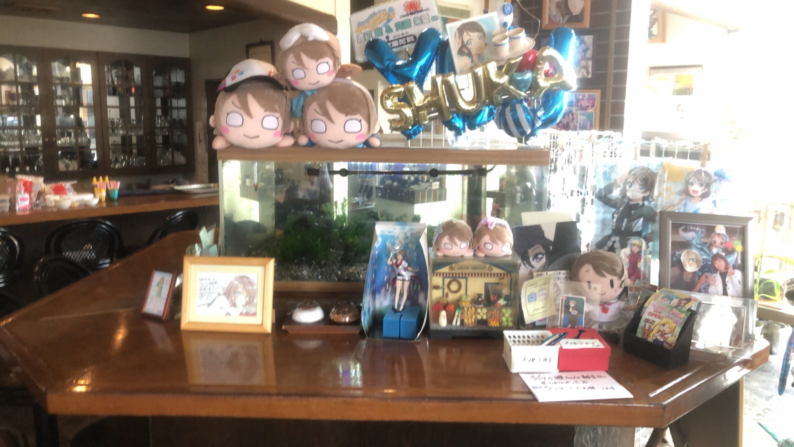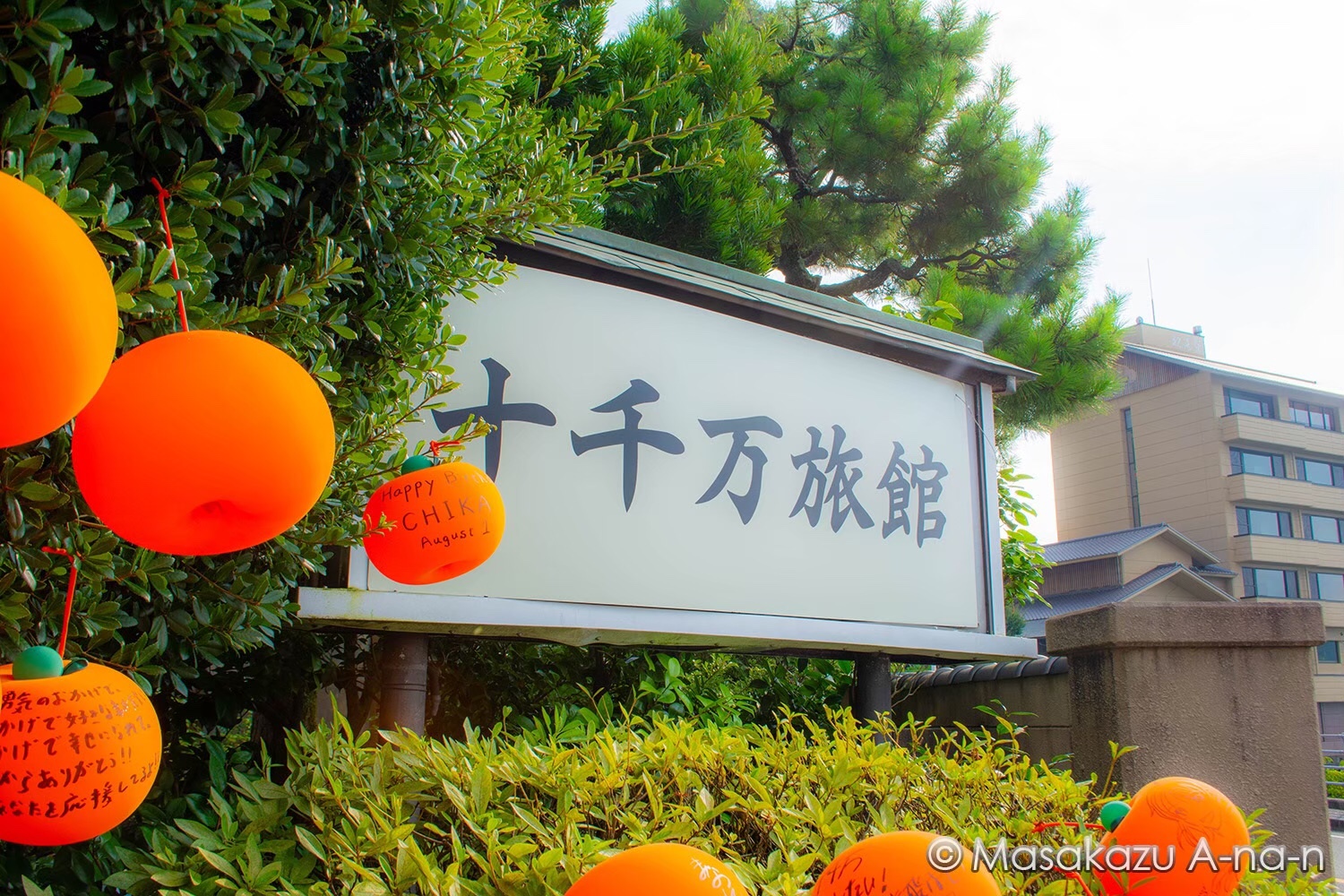 主人公、高海千歌ちゃんの実家である十千万旅館です!実際の旅館は安田屋旅館になります。日帰りで温泉が入れます!ちなみに行った日は8/1。千歌ちゃんの誕生日です!千歌ちゃんが大好きなみかんの風船が沢山結ばれてました!