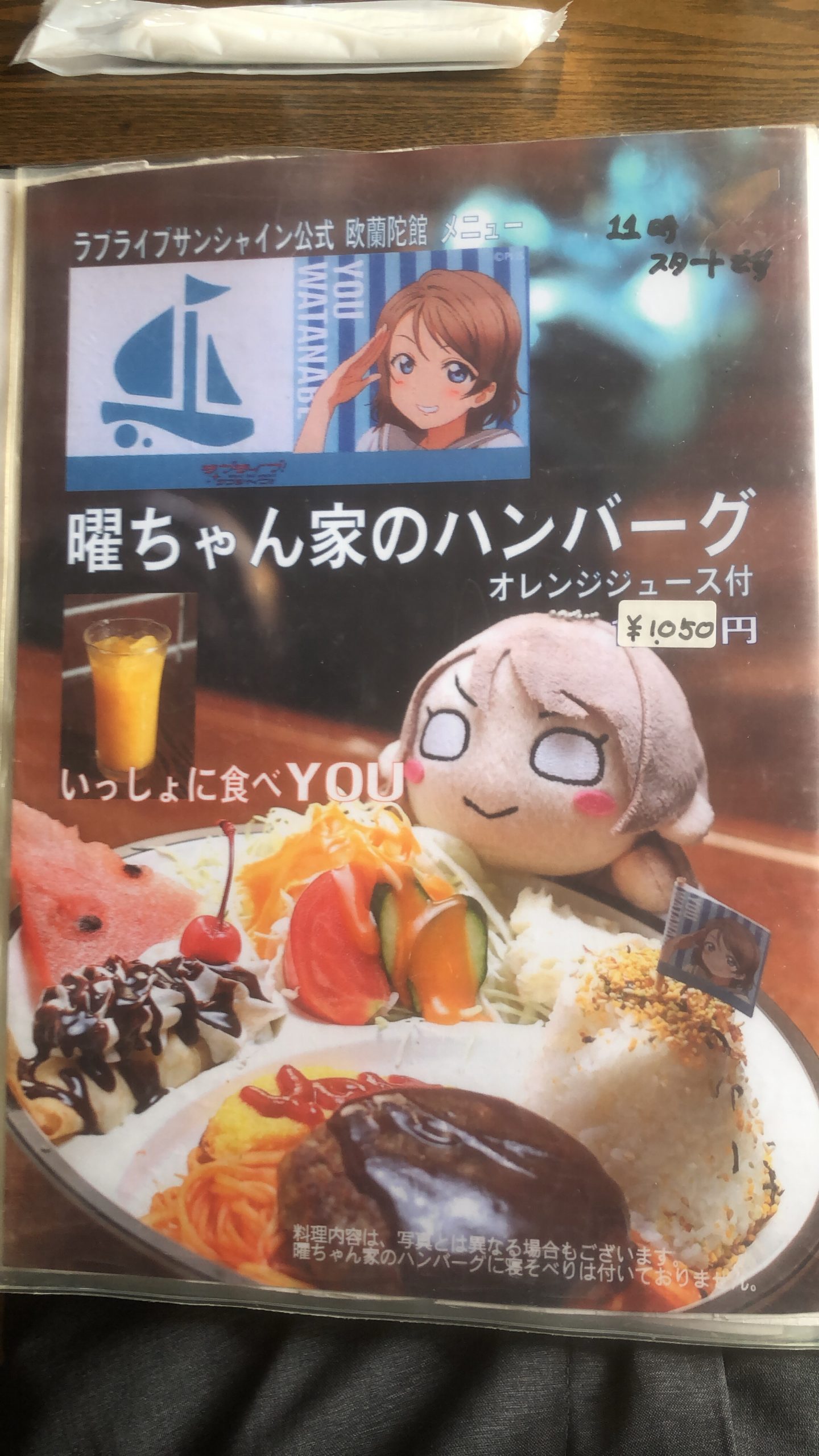 続いて阿蘭陀館さんです!渡辺曜ちゃんの実家になります!朝10時のオープンでオンタイムに行ったにも関わらず満席でした!曜ちゃんが好きなハンバーグを食べました!定食は11時以降注文できます!