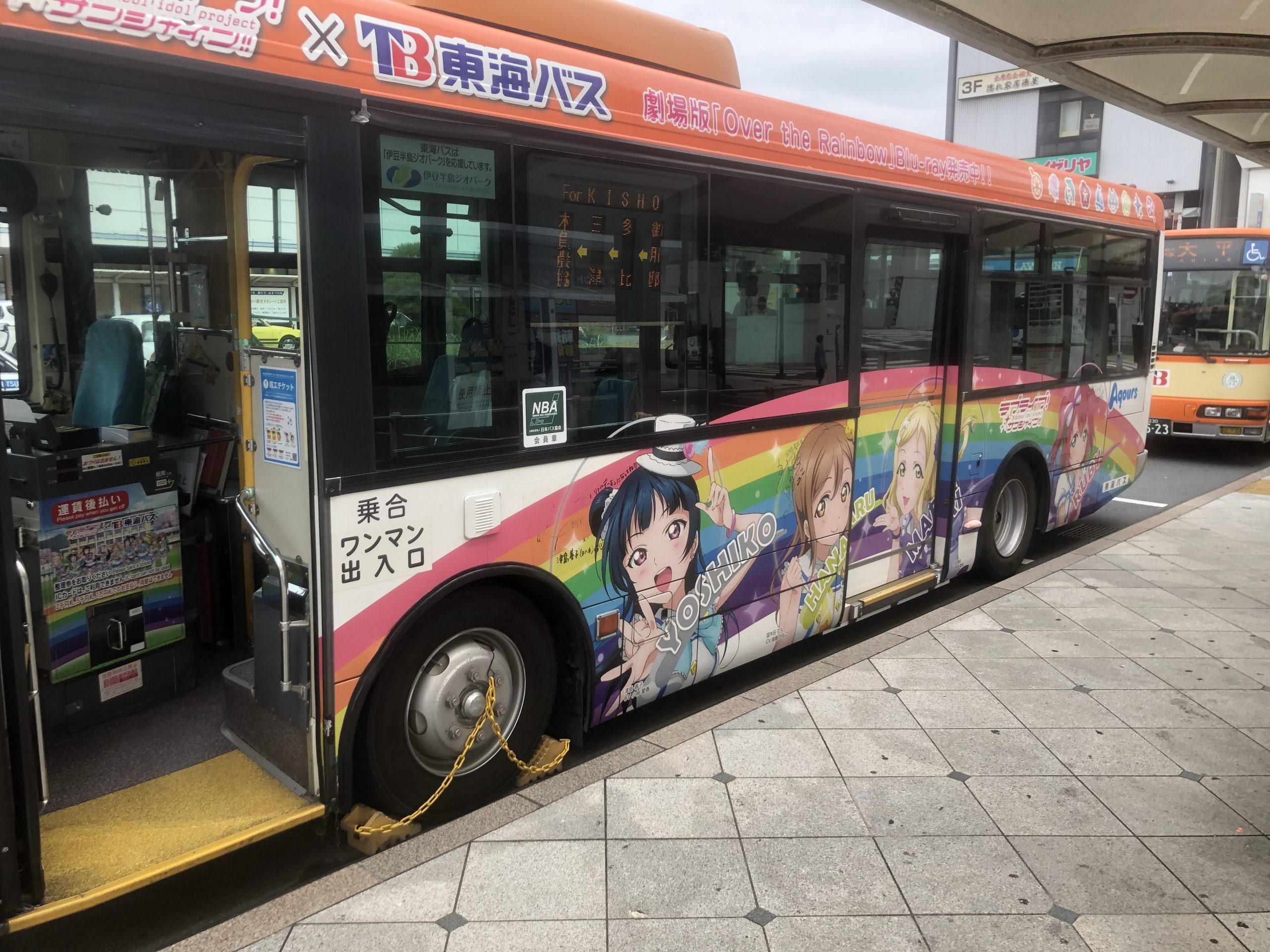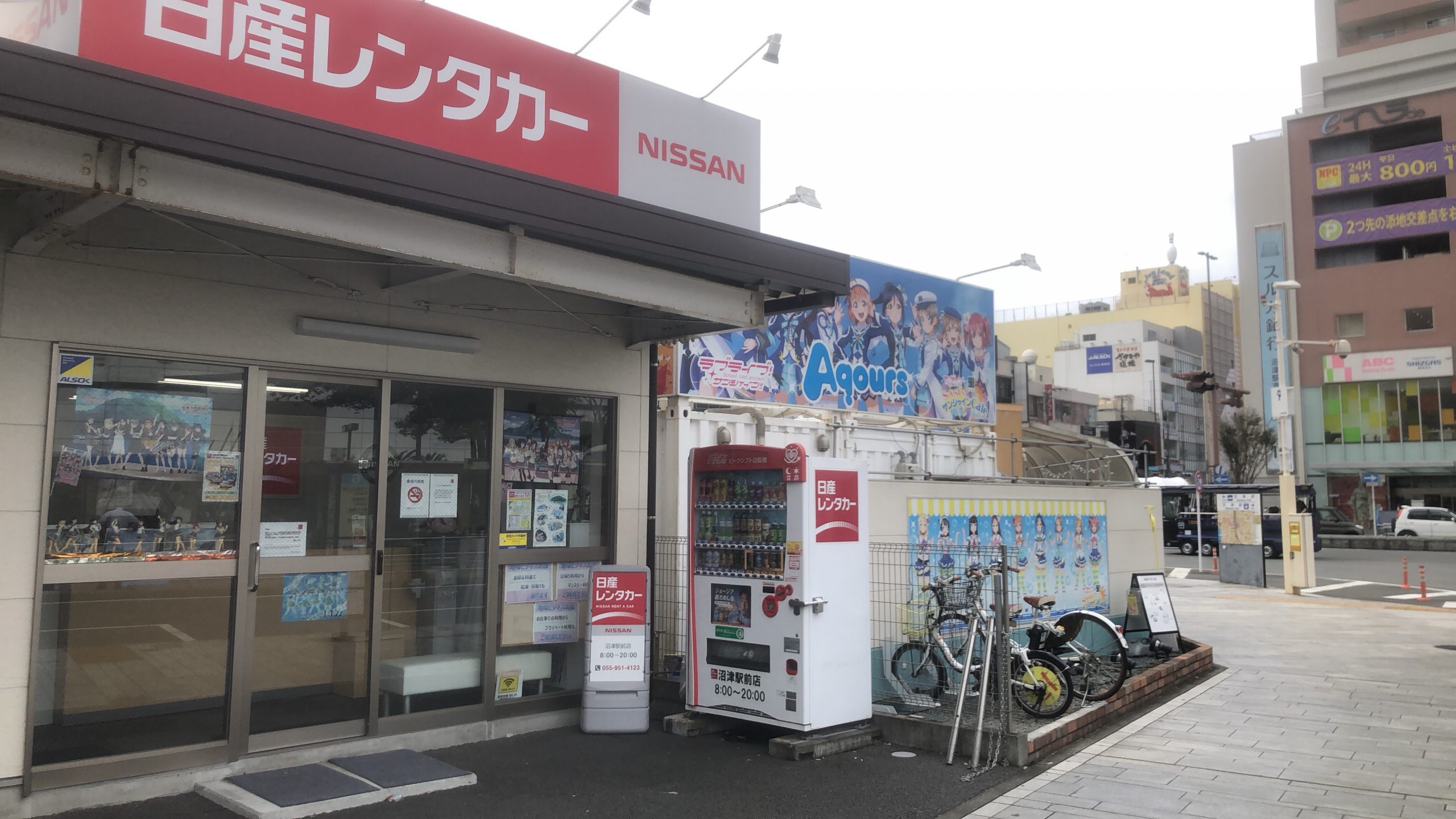 沼津駅南口はバスロータリーになっています。そして、東海バスさんがAqoursとコラボしたバスがあるのです!またラブライブカフェも南口にあります!カフェ裏の日産レンタカーは痛車を借りることができます!